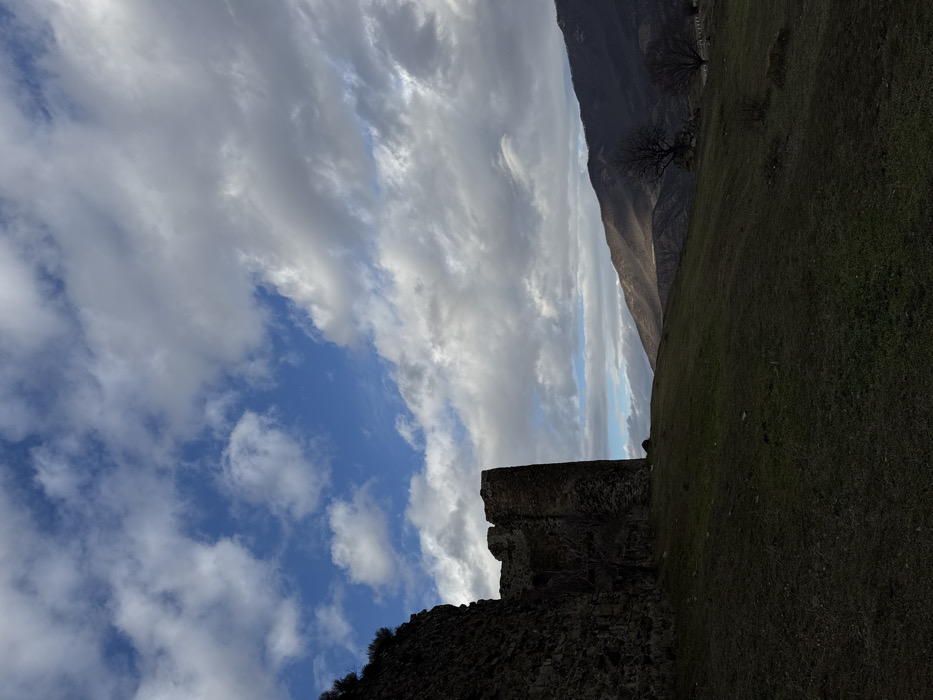 - "The image displays a landscape featuring ancient stone ruins on a hillside, set against a mountainous background and a partly cloudy sky" by FM-GMxhS2, licensed under CC BY 4.0
