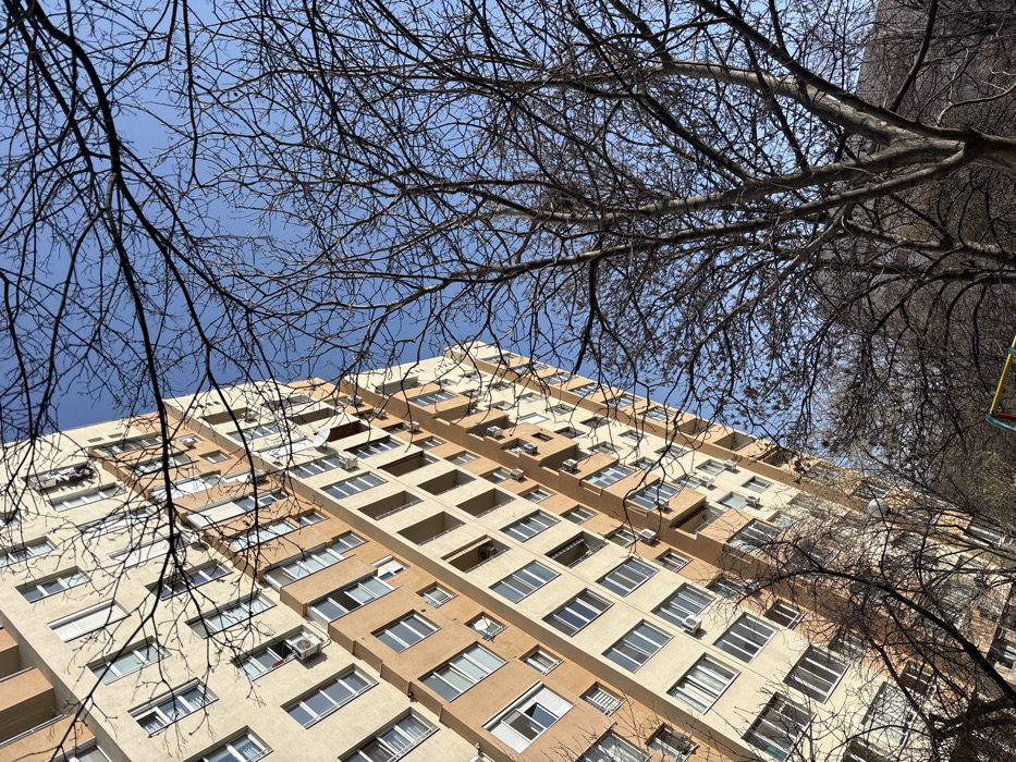 - "The image displays a tall, multi-story residential building in Sofia, Bulgaria, observed from a low-angle perspective, causing it to appear diagonally aligned against a clear, bright blue sky" by FM-KZtMr2, licensed under CC BY 4.0