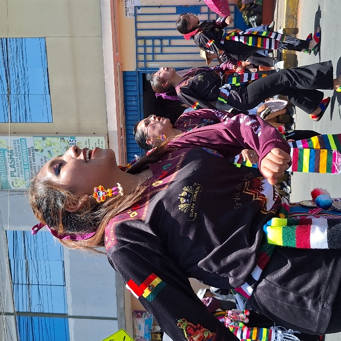 - "Four women in traditional Bolivian attire march in formation" by FM-b0Aw43, licensed under CC BY 4.0