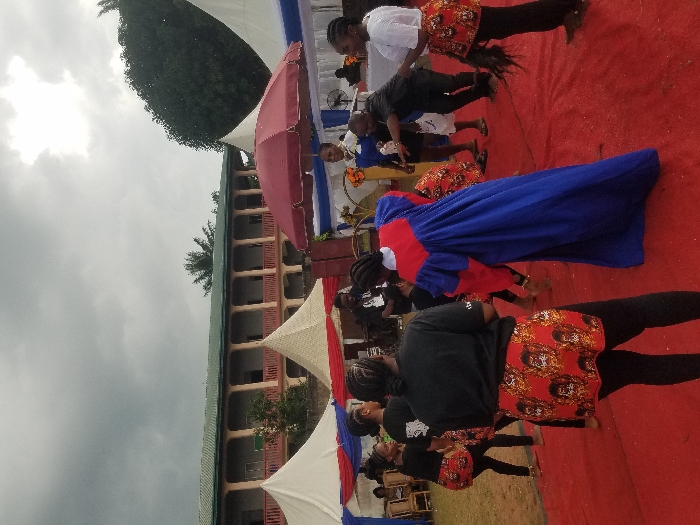 An outdoor event is depicted in Alor, Nigeria, under a heavily overcast sky