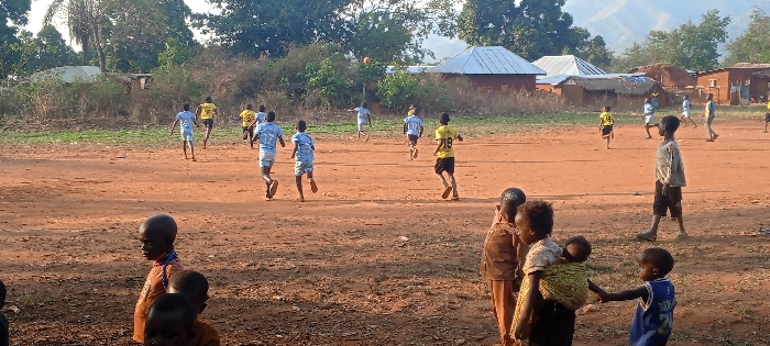 - "The image displays an outdoor scene in Konongo, Democratic Republic of the Congo, centered on a large, reddish-brown dirt field" by FM-Di9s03, licensed under CC BY 4.0
