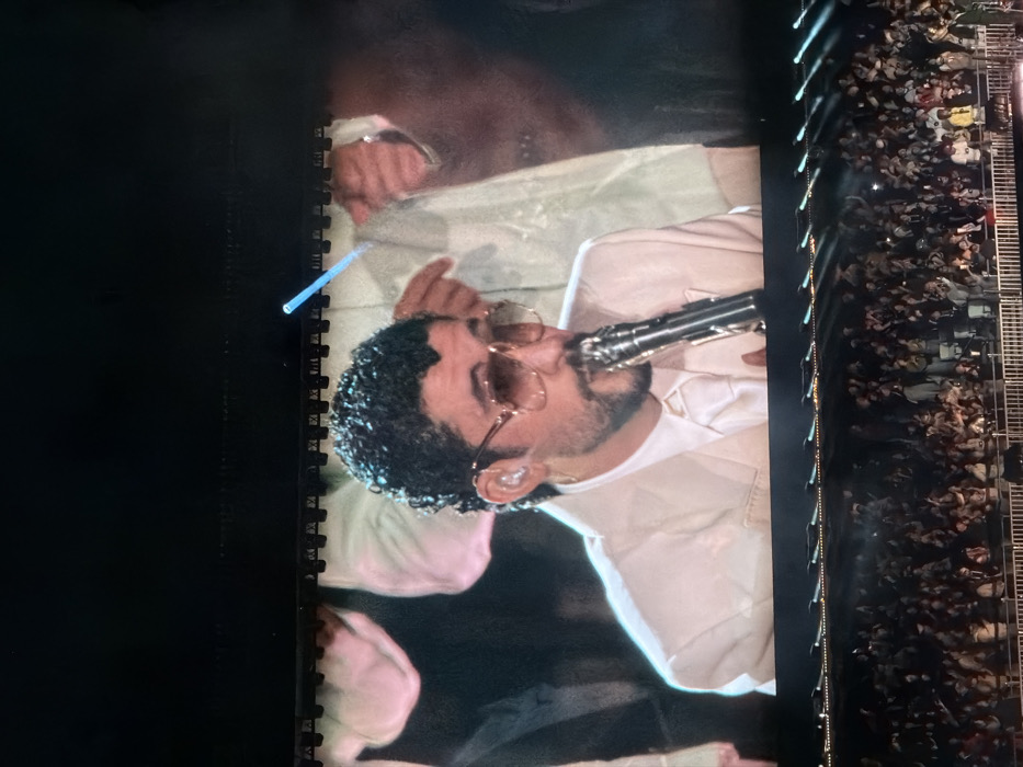 - "A low-angle, rotated shot reveals Bad Bunny playing a clarinet on a large screen" by FM-PGnDP2, licensed under CC BY 4.0