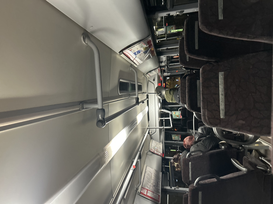 The interior of a bus is depicted