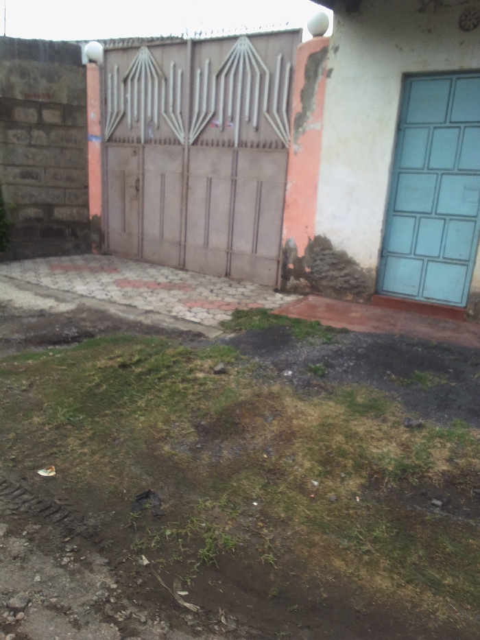 An exterior, ground-level photograph depicts a secured property entrance and an adjacent building within the city of Nakuru East ward, Kenya