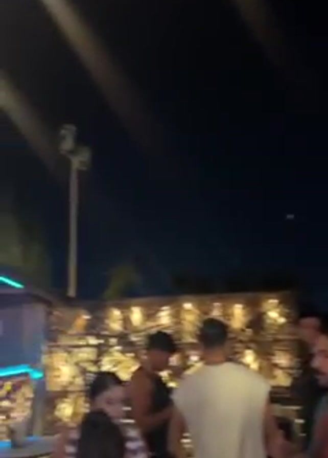 lively nightlife scene under the night sky, with many people dressed in party attire