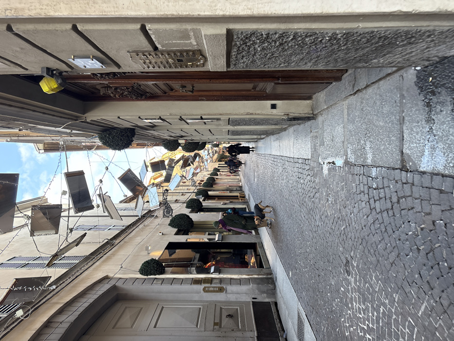 - "This image depicts a narrow cobblestone street in the city of Parma, Italy, flanked by multi-story stone buildings under a partly cloudy sky" by FM-E1hwL2, licensed under CC BY 4.0