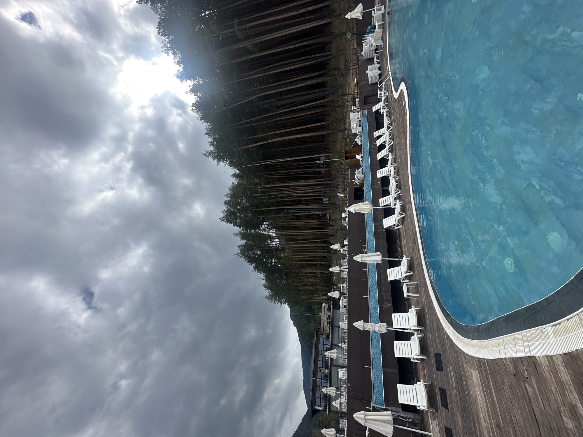 - "An outdoor swimming pool complex, likely part of a resort, is depicted in Sapareva Banya, Bulgaria, under a heavily clouded sky with sun breaking through on the right" by FM-cnc883, licensed under CC BY 4.0