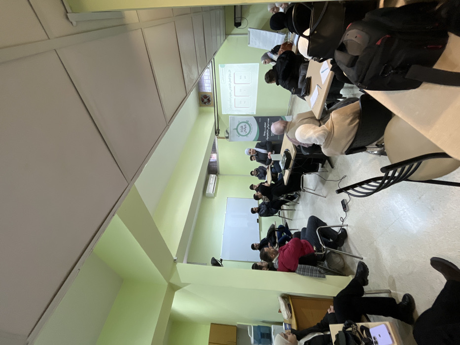 This image captures an indoor educational or meeting session in Al-Mazza Municipality, Syria