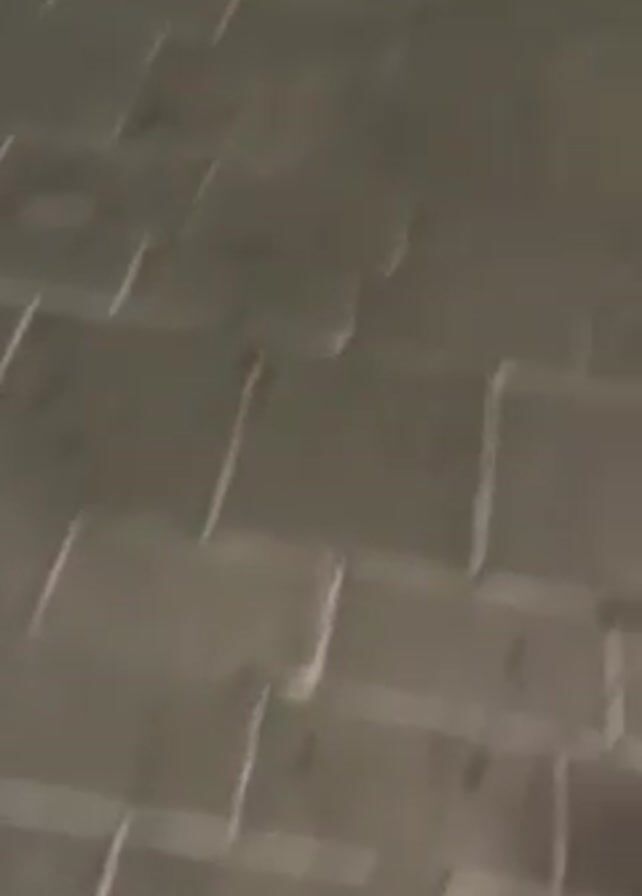 The video starts with a person walking on a paved sidewalk, holding a bright orange Louis Vuitton shopping bag