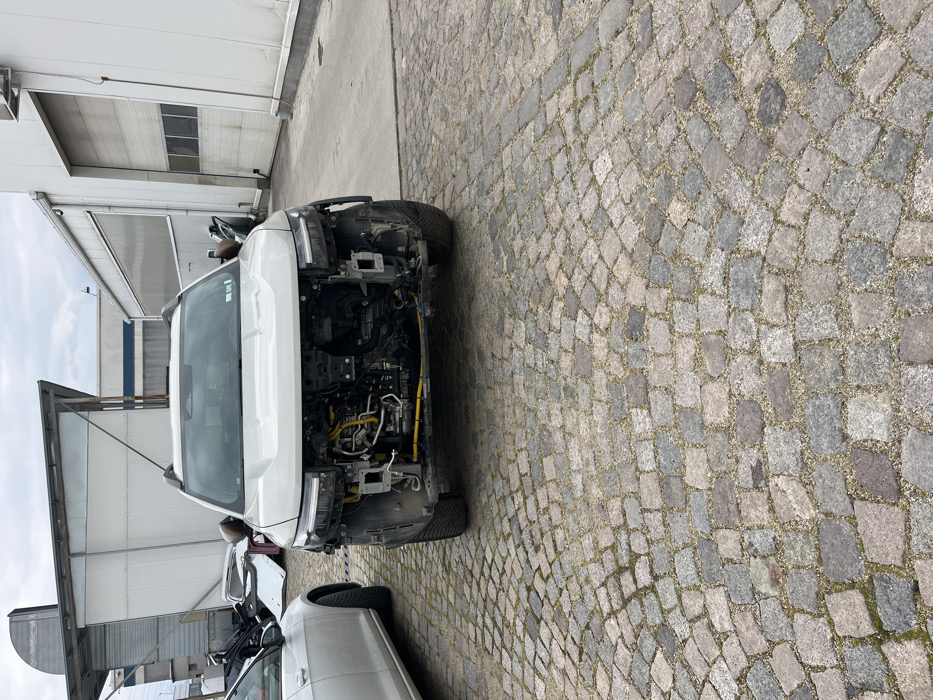 - "An outdoor scene in Pazardzhik, Bulgaria, features a white SUV with its front fascia removed, positioned centrally on a cobblestone paved lot" by FM-HVVEG3, licensed under CC BY 4.0
