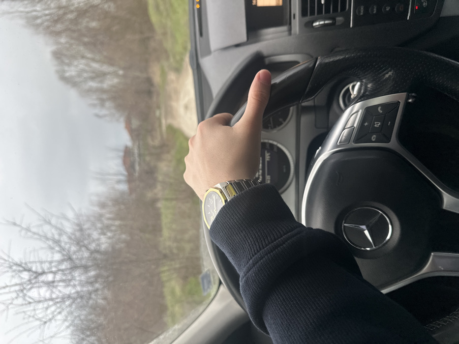 - "The image depicts a first-person view from the driver's seat of a Mercedes-Benz vehicle, situated on an unpaved dirt road in Ignatievo, Bulgaria" by FM-6hsQy2, licensed under CC BY 4.0