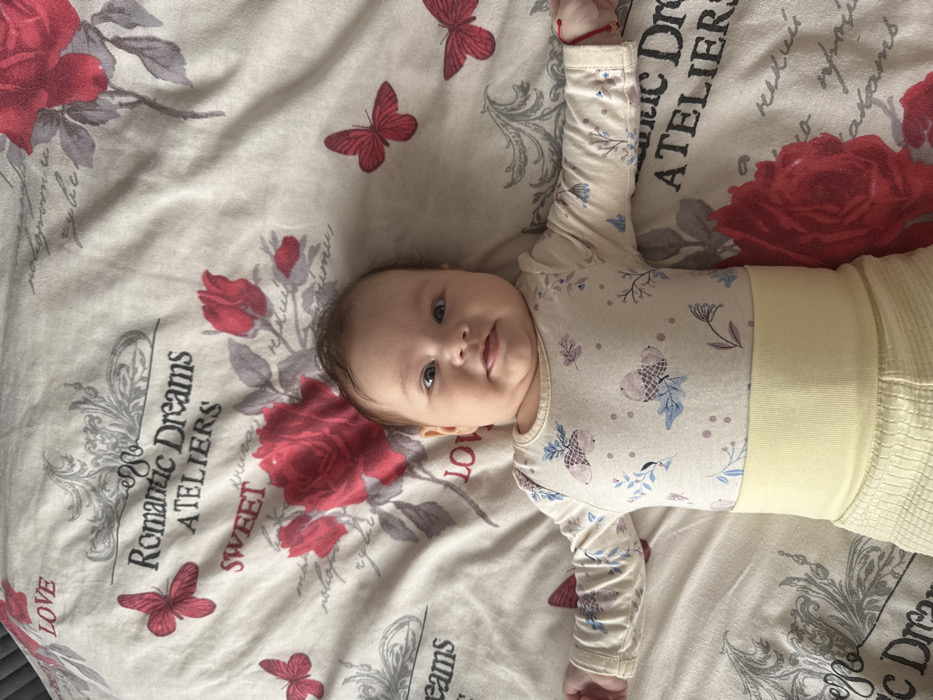 - "An infant is depicted lying supine on a patterned duvet in an indoor setting within the city of Pleven, Bulgaria" by FM-uLvty2, licensed under CC BY 4.0