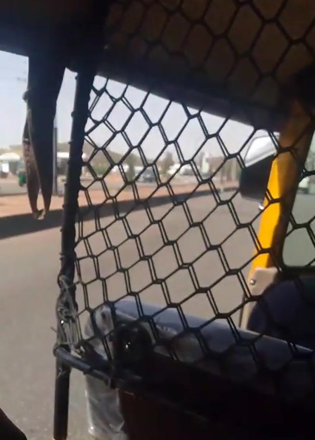 The video appears to be taken from inside a motorized three-wheeled vehicle, possibly a tuk-tuk or auto-rickshaw