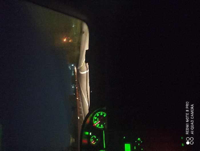 The image depicts a nighttime view from inside a vehicle, reportedly located in San Valentino Torio, Italy
