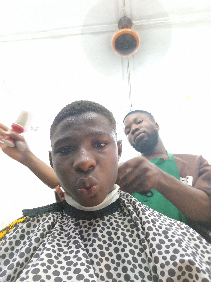 - "A young man pouts for the camera while receiving a haircut" by FM-vnTjF3, licensed under CC BY 4.0