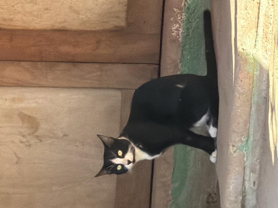 - "A black and white tuxedo cat is observed sitting on a concrete ledge in Mazunte, Mexico" by FM-TOA2r1, licensed under CC BY 4.0