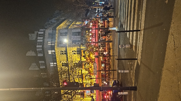 - "At night, an urban scene features a building with bright yellow lights, storefronts, and a restaurant awning with red lettering" by FM-wUp8n2, licensed under CC BY 4.0