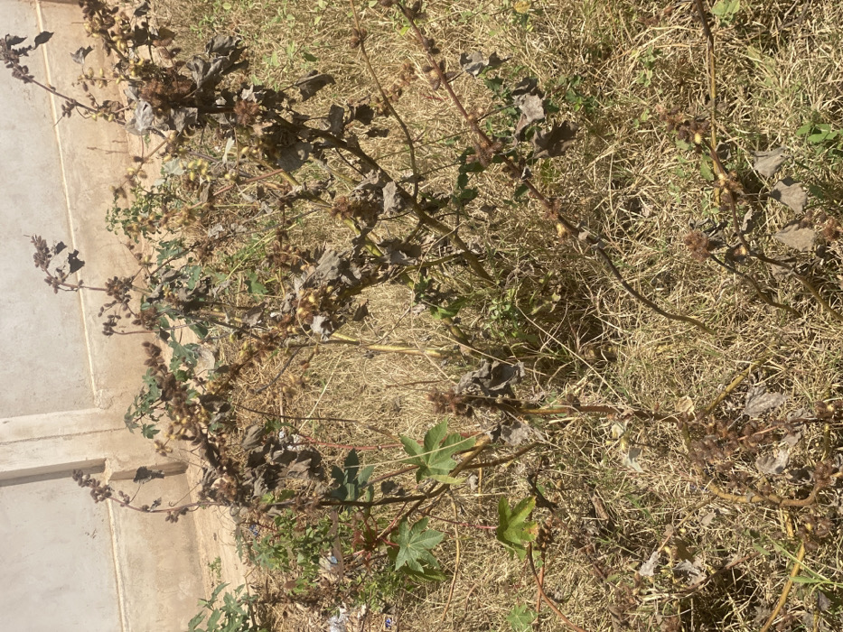 close-up view of a patch of dry, withered vegetation. The plant is brown and yellow, and the leaves are mostly absent. The stems are thin and brittle, and the plant appears to be dead. There is some dry grass and dead leaves around the plant. The image was taken in Dodoma, Tanzania, at the location with coordinates latitude: -6.154, longitude: 35.788. The location is outdoors, and the image is taken from a ground-level perspective. The weather appears to be sunny and dry. There are no people or animals present.