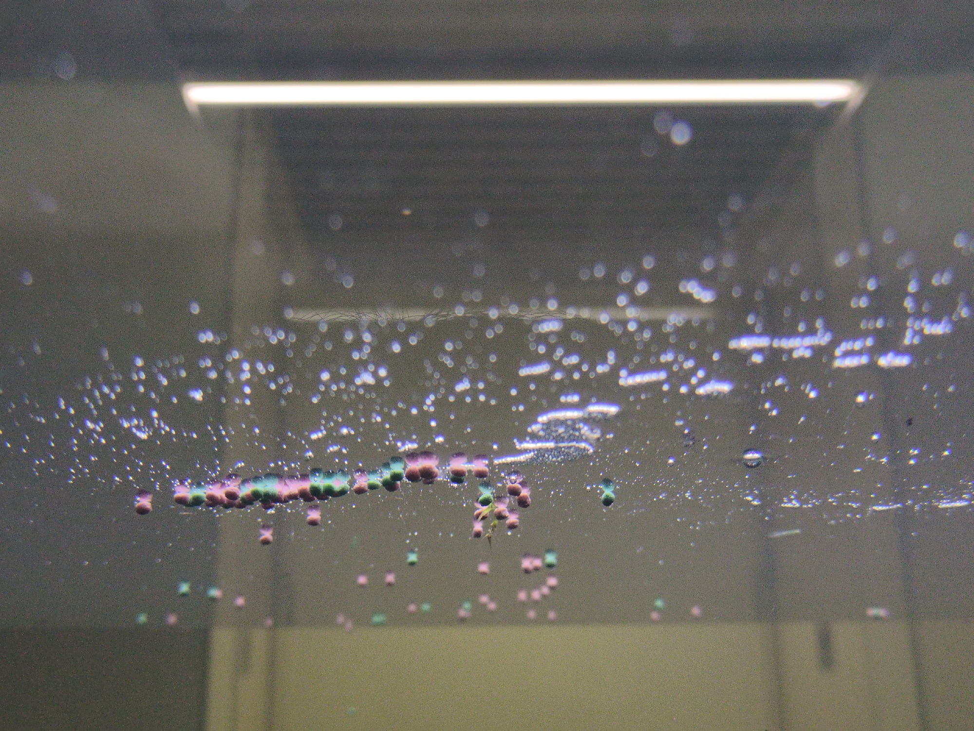 - "The image depicts a view looking through a transparent surface, possibly glass or acrylic, covered with numerous water droplets of varying sizes" by FM-8aYxT2, licensed under CC BY 4.0