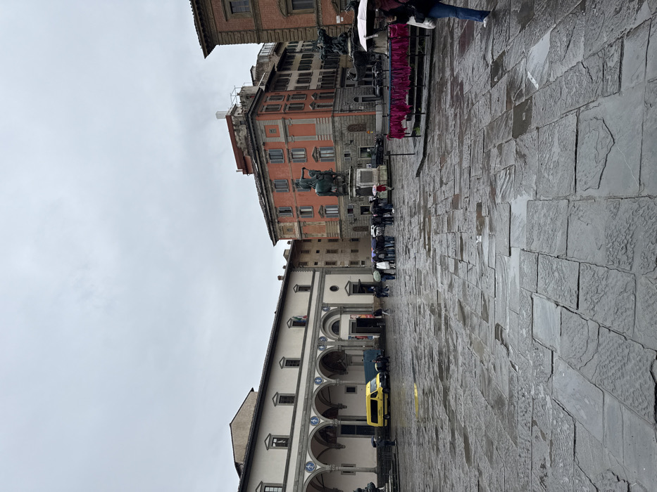 - "This image depicts Piazza della Santissima Annunziata in Florence, Italy, under an overcast sky with wet cobblestone paving, indicating recent precipitation" by FM-IXb3V2, licensed under CC BY 4.0