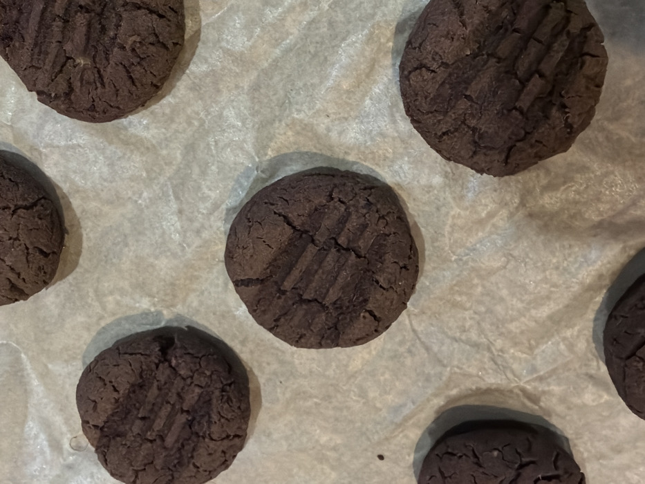 - "Seven dark brown, circular cookies are arranged on a piece of light-colored, crinkled parchment paper" by FM-gJDOi2, licensed under CC BY 4.0