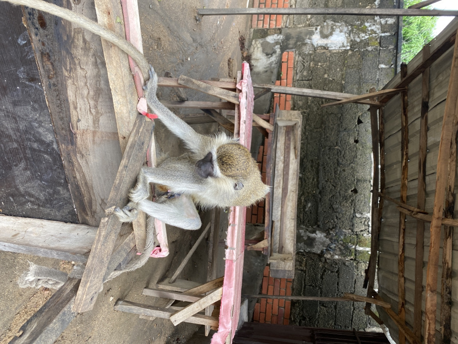 - "A single vervet monkey is depicted under a makeshift wooden shelter in Lokoja, Nigeria" by FM-M8Lxc2, licensed under CC BY 4.0