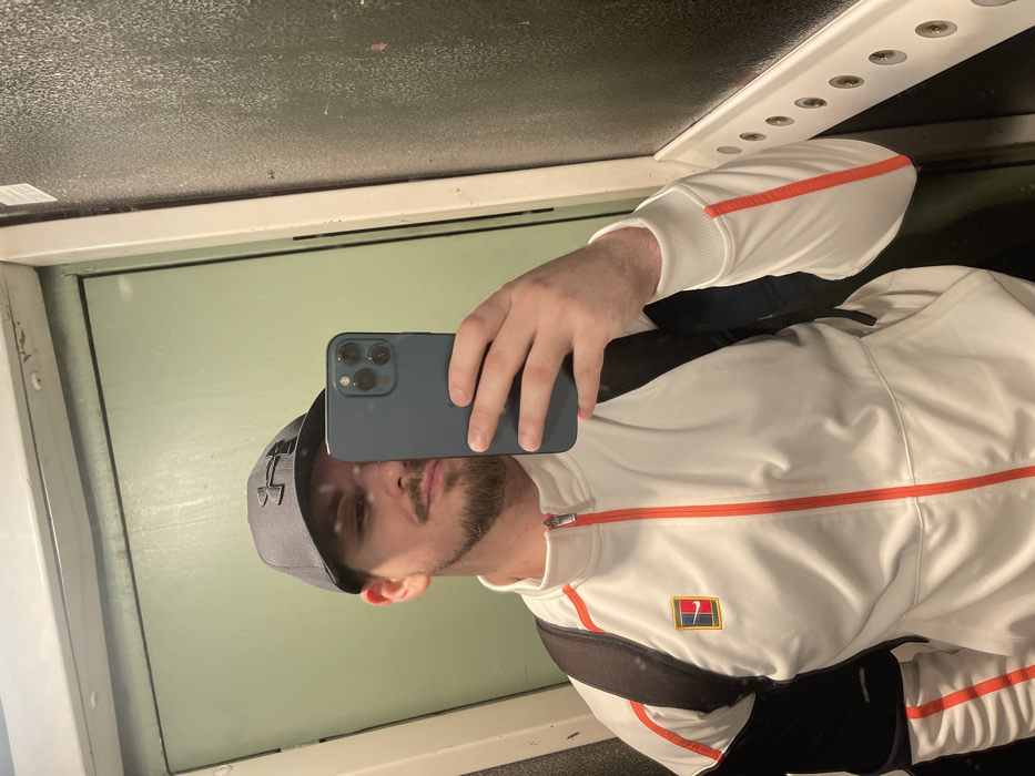 - "A male individual with a trimmed beard and mustache, wearing a dark grey Under Armour baseball cap and a white NikeCourt athletic jacket with orange trim, is visible from the chest up" by FM-fEXjF2, licensed under CC BY 4.0