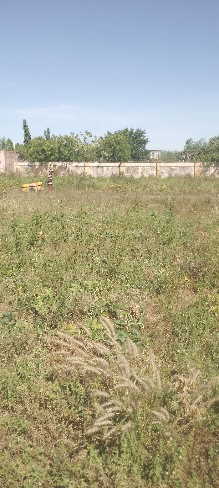 This image captures an open, overgrown field in the city of Unknown, Unknown, under a clear blue sky