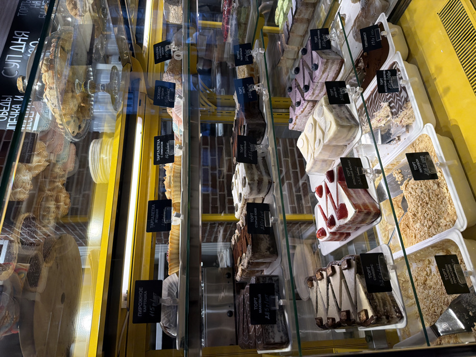- "An interior photograph depicts a refrigerated glass display case within a bakery or cafe located in Voronezh, Russia" by FM-dhy2S2, licensed under CC BY 4.0