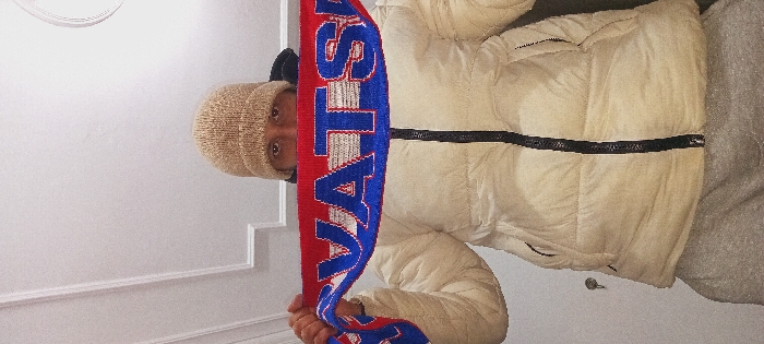 - "A person in a beige beanie and white puffer jacket holds a red, white, and blue scarf in front of their face" by FM-oKOCt2, licensed under CC BY 4.0