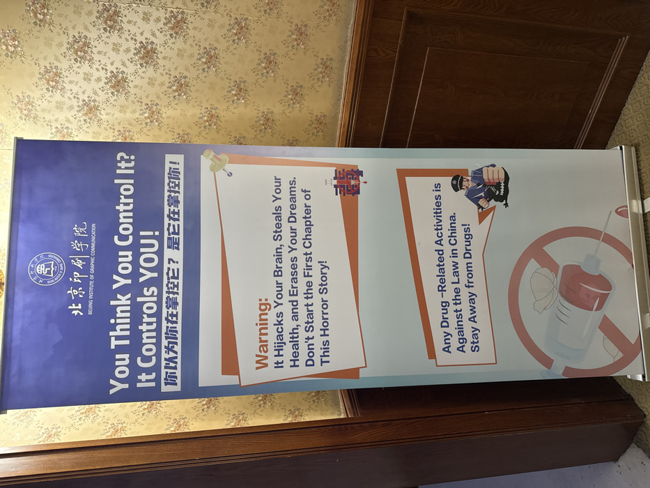 poster from the Beijing Institute of Graphic Communication warning against drug use
