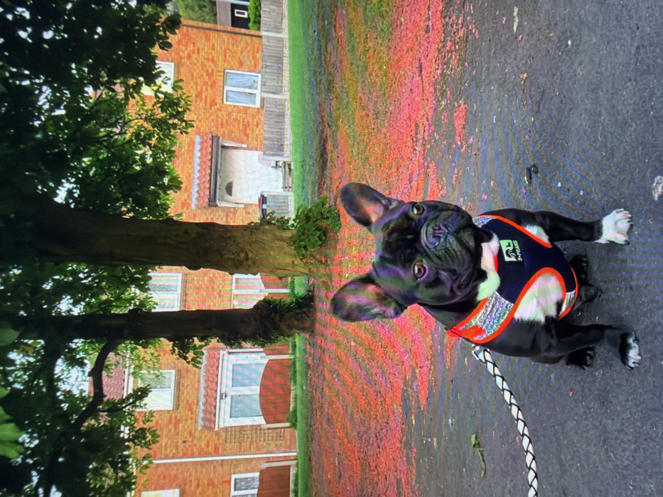 - "A black French Bulldog with white markings on its chest and paws is depicted in a seated position on a dark, paved surface" by FM-qtDIi2, licensed under CC BY 4.0