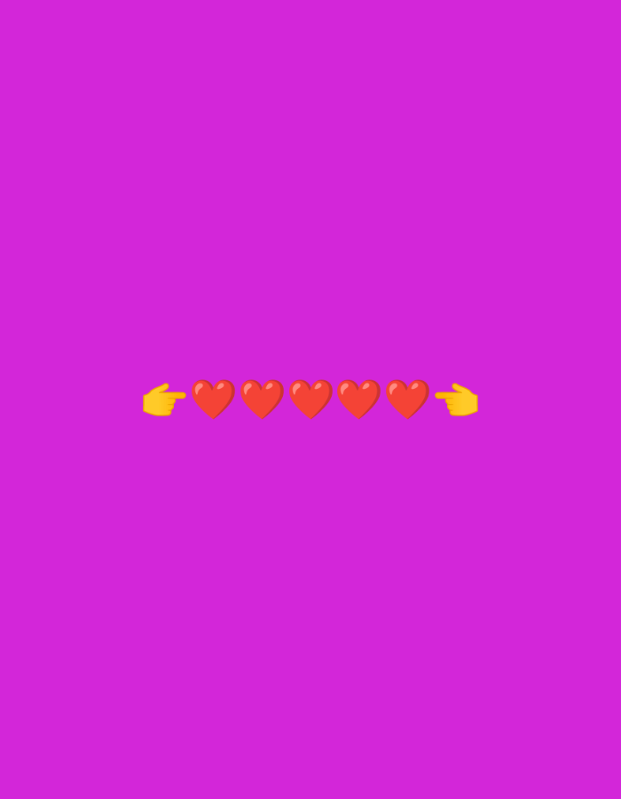 five red heart emojis aligned horizontally against a solid magenta background
