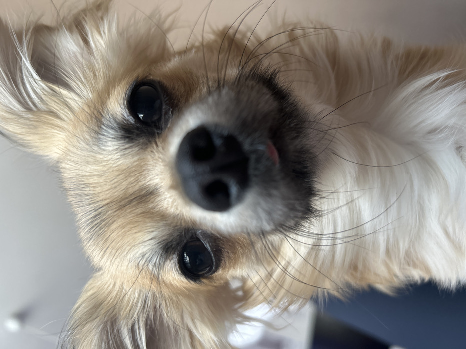 - "The image presents an extreme close-up, head-on view of a long-haired Chihuahua" by FM-9lrff1, licensed under CC BY 4.0