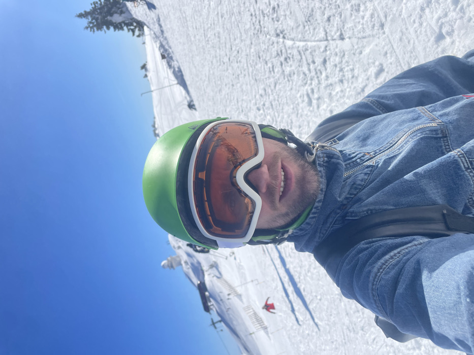 A male individual is depicted in a close-up, selfie-style photograph on a snow-covered mountain ski slope in Jahorina, Bosnia and Herzegovina