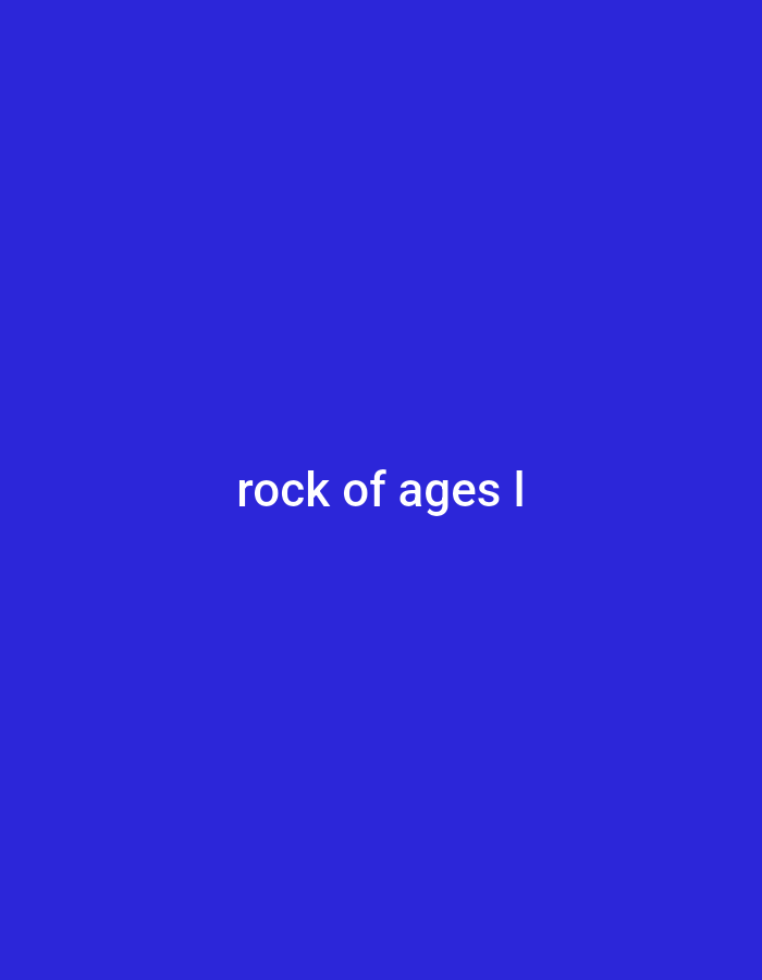 A solid, dark blue background fills the frame. Centered in the image is the white text "rock of ages I." The font is simple and sans-serif. The composition is clean and minimalist, focusing attention solely on the textual content against the monochromatic backdrop. The text is easily readable due to the strong contrast between the white letters and the dark blue background.