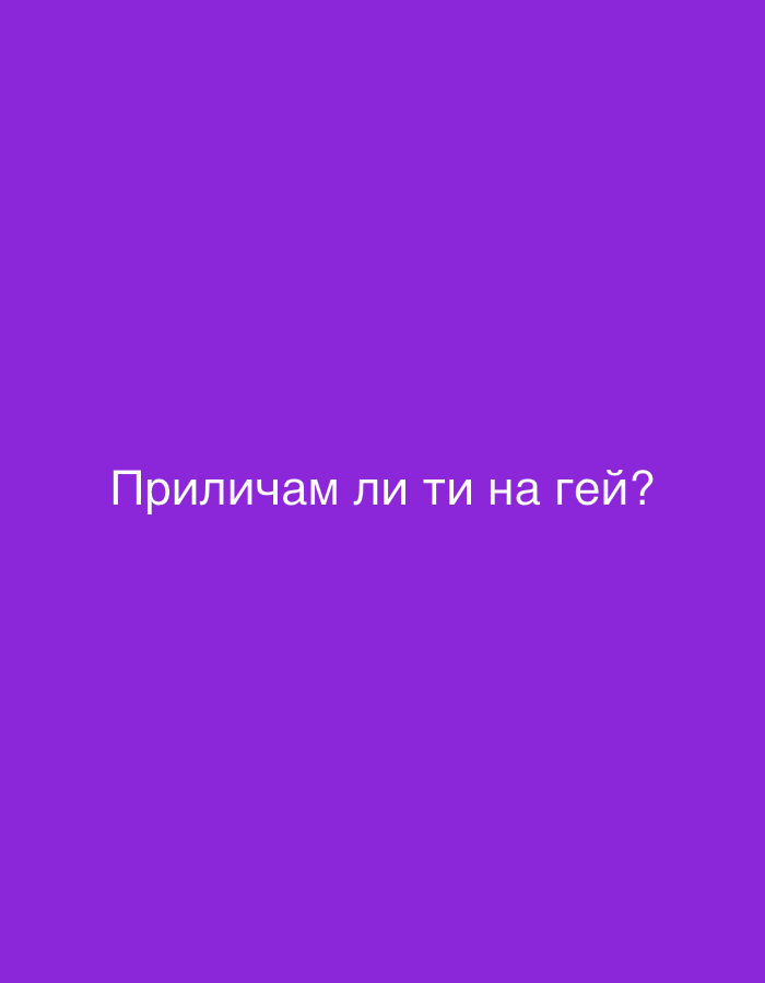 The image displays a solid, uniform purple background. Centrally positioned on this background is white text in Cyrillic script. The text reads: "Приличам ли ти на гей?" This phrase translates from Bulgarian to English as: "Do I look gay to you?" There are no people, subjects, objects other than the text, actions, or interactions depicted. The environment is a two-dimensional graphic display. The image content does not provide any visual information or context to confirm or suggest a physical location in Orie Uratta, Nigeria.