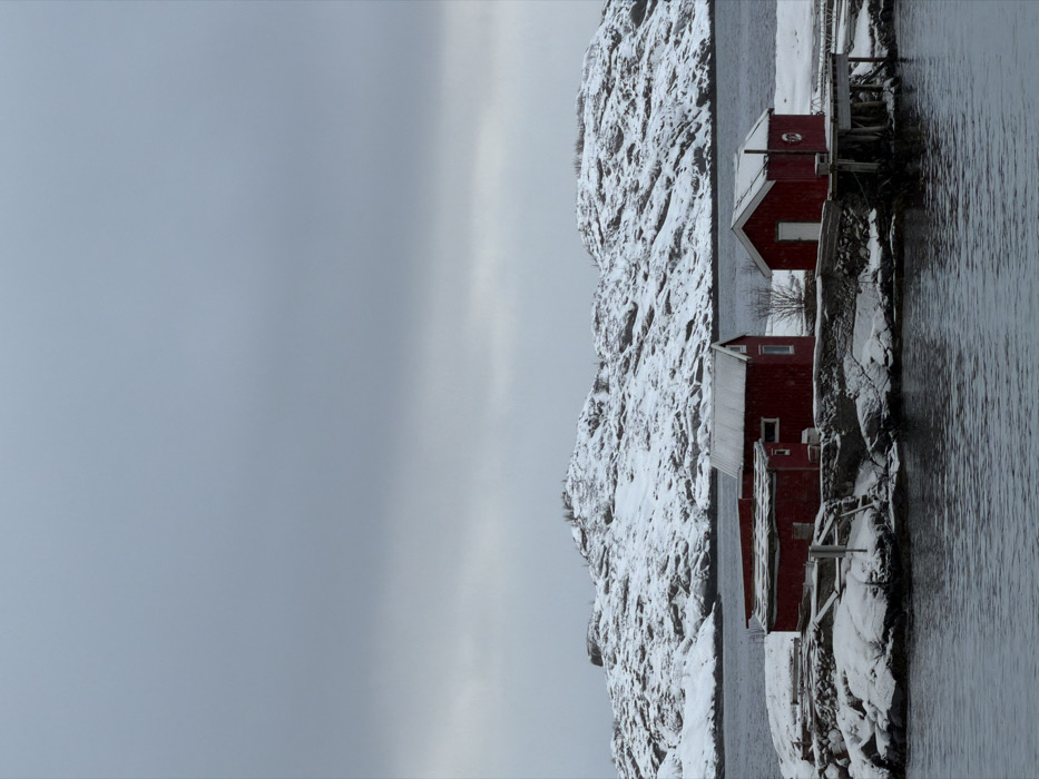 - "A winter scene in Svolvær, Norway, depicts three traditional red wooden structures, characteristic of rorbuer, situated on a snow-covered rocky islet amidst calm water" by FM-AJf9d2, licensed under CC BY 4.0
