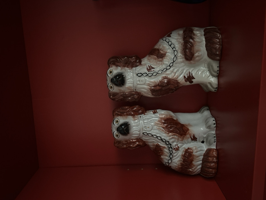- "The image depicts two identical ceramic dog figurines situated on a solid red shelf within a red-painted cubbyhole" by FM-sApNa2, licensed under CC BY 4.0