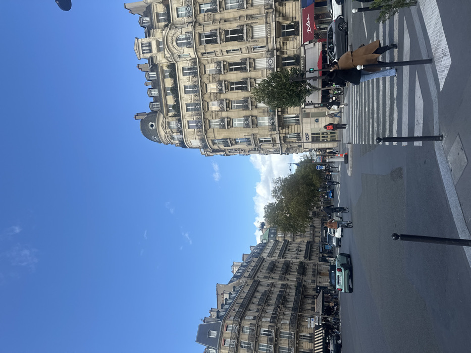 - "This image depicts a bustling street intersection in Paris, France, under a clear blue sky with sparse white clouds" by FM-kXroX2, licensed under CC BY 4.0