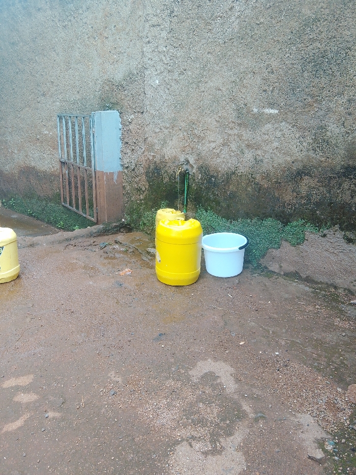 This image depicts an outdoor water collection point in Kisii, Kenya