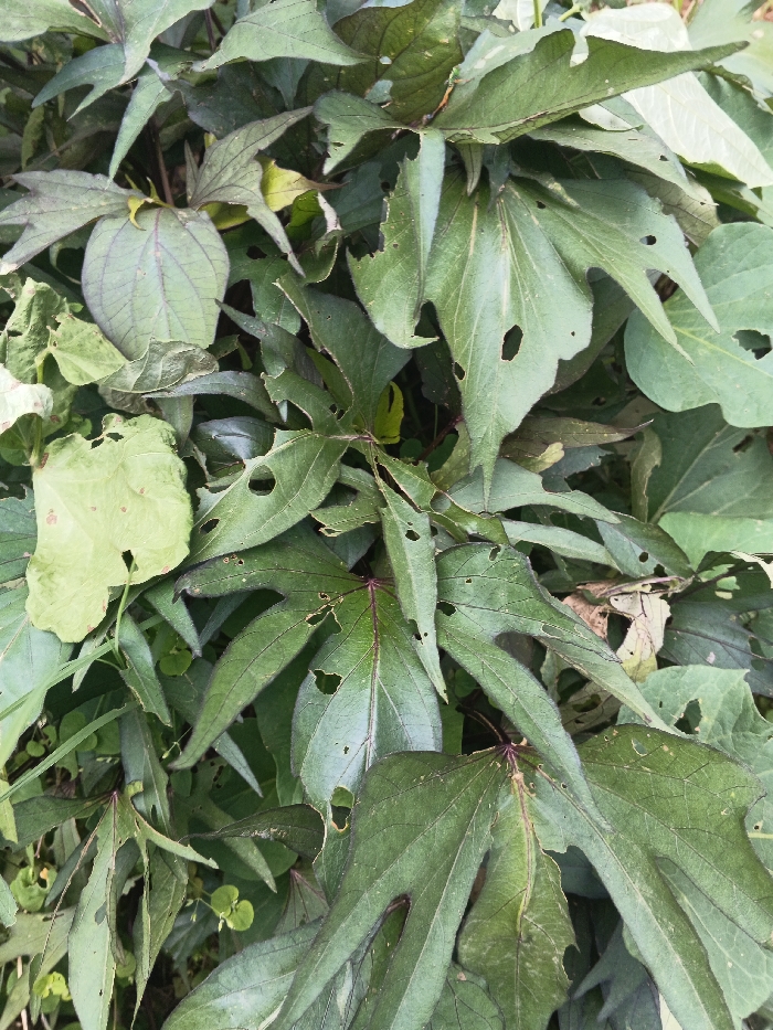 - "The image displays a close-up, vertical composition of dense plant foliage, consistent with sweet potato (Ipomoea batatas) vines, situated in Đăk La, Vietnam" by FM-dMT6c2, licensed under CC BY 4.0