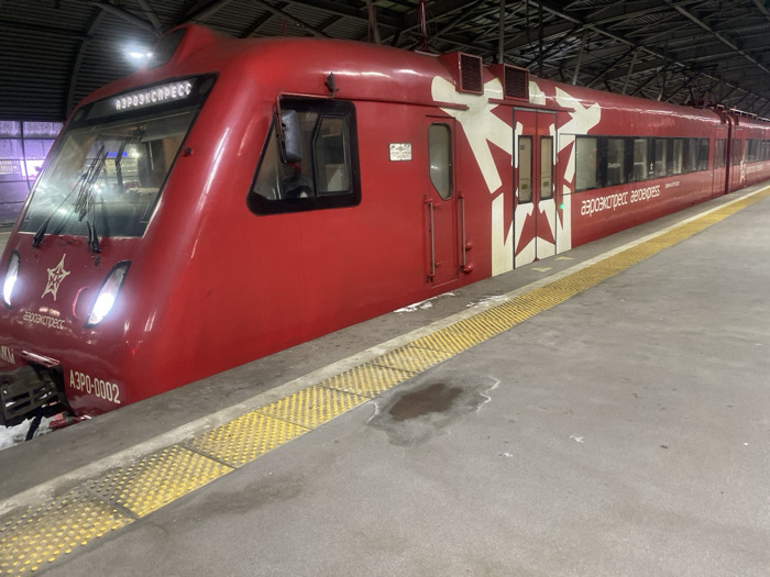 - "A red Aeroexpress train with a white graphic design is parked at a station" by FM-gOly33, licensed under CC BY 4.0