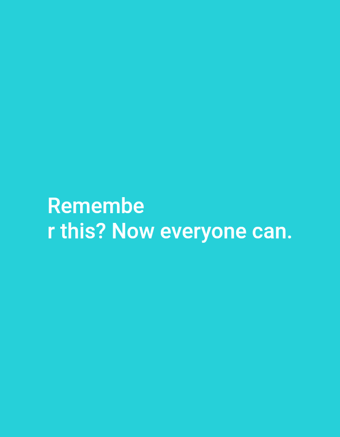- "The image is a solid cyan blue background with white text that reads: "Remembe r this? Now everyone can" by FM-Nks5J3, licensed under CC BY 4.0