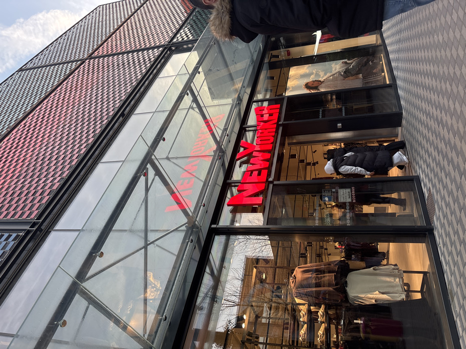 The image captures the exterior of a "NEW YORKER" retail store located in Reichstett, France