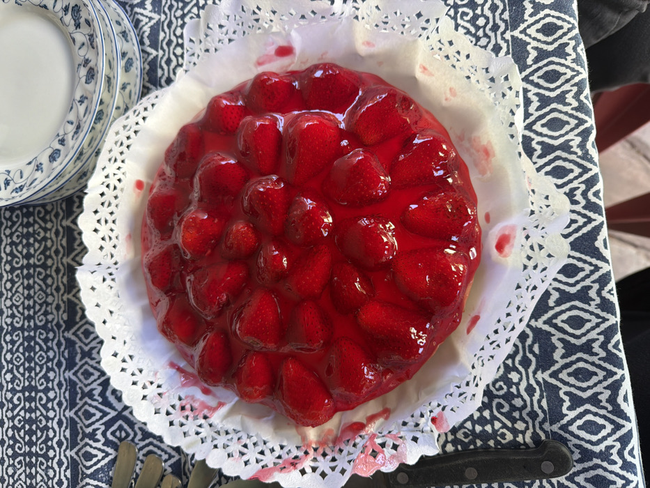 - "An overhead shot presents a strawberry tart centrally positioned on a table in Vicente López, Argentina" by FM-kv6z32, licensed under CC BY 4.0
