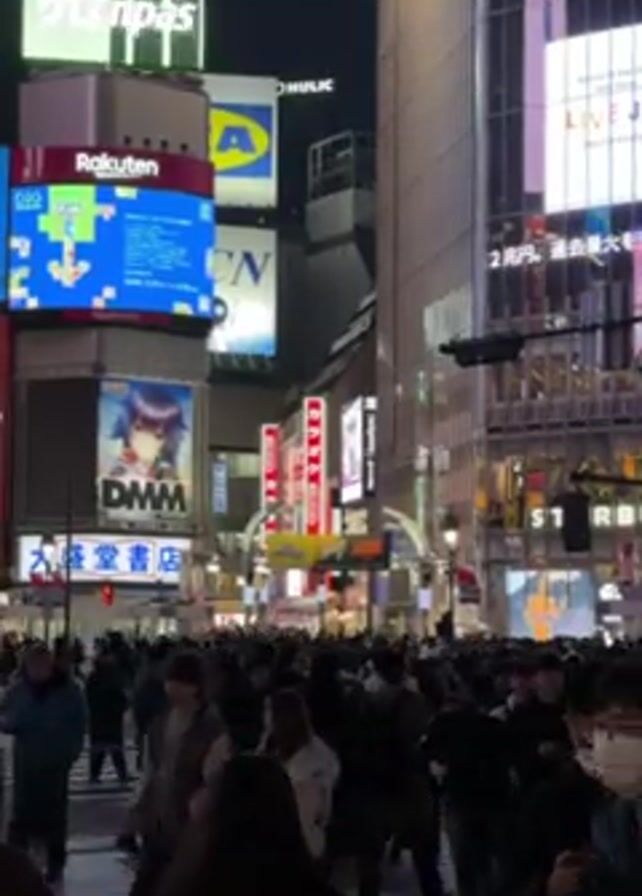 crowded pedestrian crossing in Shibuya, Tokyo at night