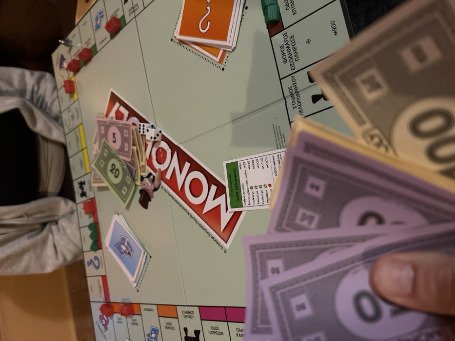 - "The scene depicts an active game of Monopoly in an indoor setting within the Gerakas Municipal Unit, Greece" by FM-KQsxp1, licensed under CC BY 4.0