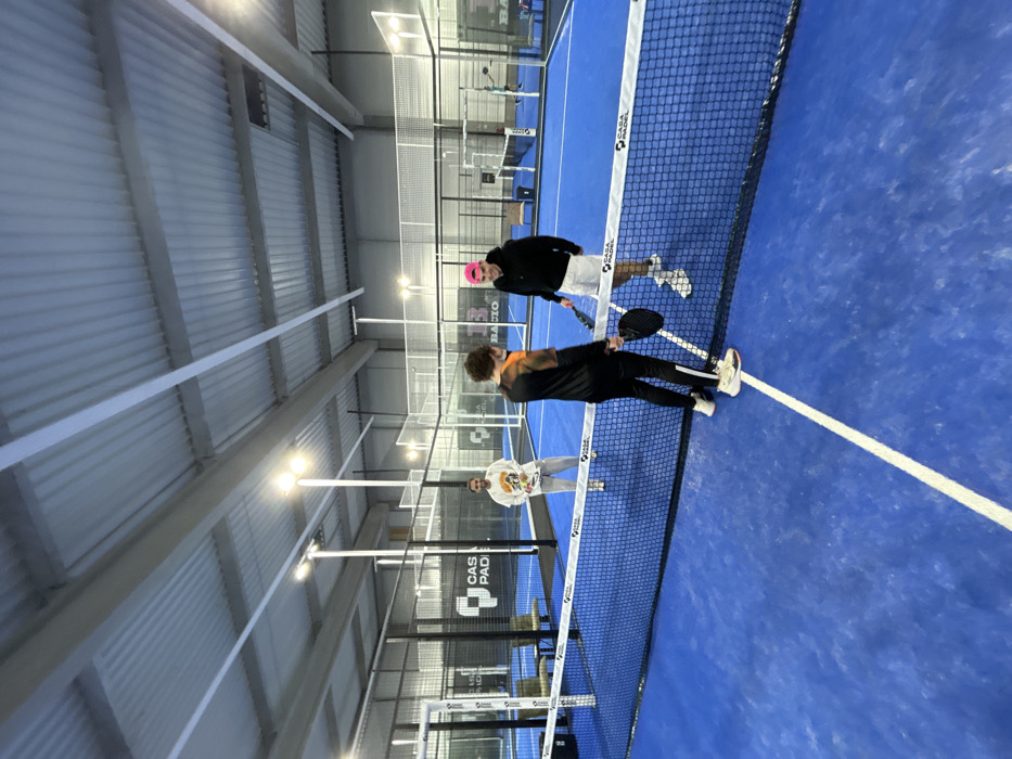 - "Three men are on a blue paddle tennis court, near the net" by FM-khYMm1, licensed under CC BY 4.0