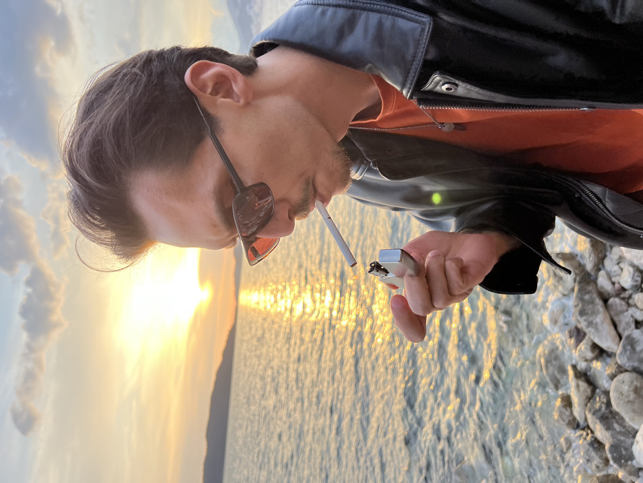 - "An adult male subject, positioned in profile facing left, is depicted igniting a cigarette at a coastal location in Kamenovo, Montenegro" by FM-T5Wdg1, licensed under CC BY 4.0